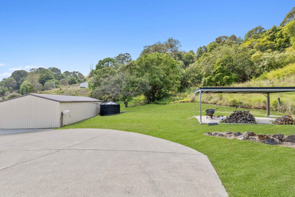 The quiet outdoors, with not a neighbour in sight, enjoy a covered sitting area overlooking the lush garden, perfect for enjoying a morning coffee or afternoon nibbles. Two large versatile sheds, including one with a workshop, provide ample space for storage or hobbies.