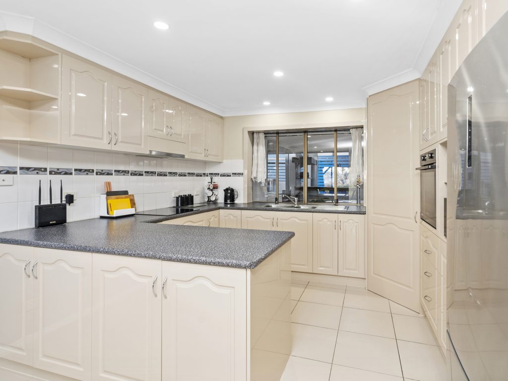 – Updated Kitchen overlooking the outdoor entertaining area