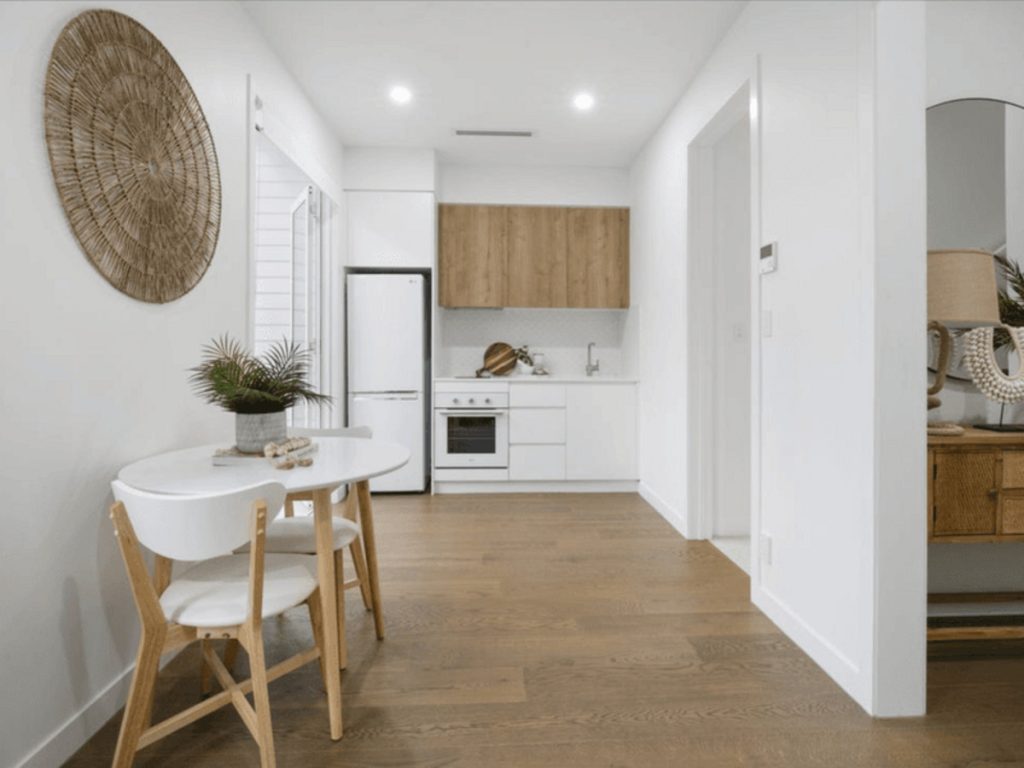 – Stone feature wall and high-end engineered timber flooring