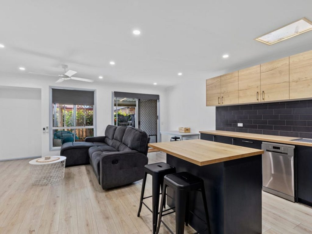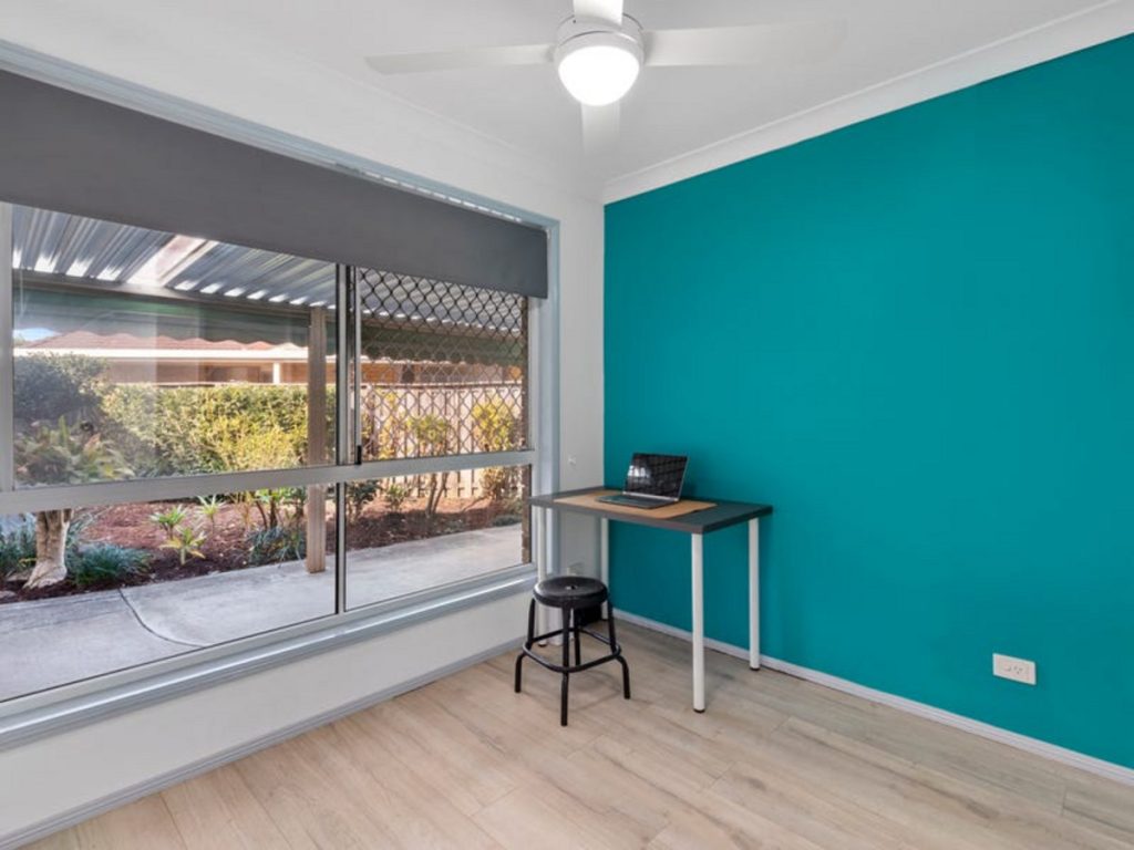 Inside, you’ll find three generously sized bedrooms, providing plenty of space for family, guests, or a home office. The home features a large renovated bathroom with a bath, ensuring a relaxing space for everyday living. Ceiling fans and air conditioning throughout the home keep the interior comfortable year-round, while contemporary finishes create a fresh and inviting atmosphere.
