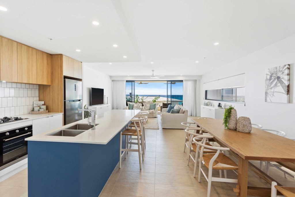 – Open plan kitchen, living and dining areas opening to an ocean-view terrace;